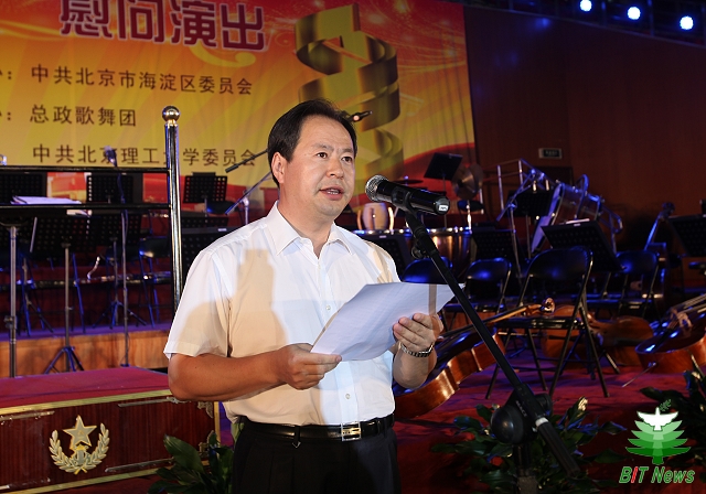 海淀区委常委、宣传部长李彦来同志在讲话中首先代表海淀区委区政府祝福理工大学70华诞生日快乐,祝贺广大教职员工节日幸福!向刚刚获得北京市教学名师奖、北京市优秀教学团队奖、T—more优秀教师奖的老师们表示了崇高的敬意。他指出,“共建核心区、奉献在海淀”暨“核心区•歌飞扬”文化演出活动是今年海淀区委宣传部主抓的一项高雅文化普及工程,是基层党委弘扬时代主旋律、抵制文化领域的低俗、庸俗、媚俗之风的实际行动。理工大学和海淀区政府是隔墙相望的近邻、友邻,今后将以更优质的服务、更具实效的措施支持理工大学的发展和建设。同时,他也热切期望理工大学能够一如既往地关心帮助海淀。使得两个单位在今后能够联系得更为紧密,交往更为频繁,合作领域更为宽广,革命友谊更为深厚,成为相互信赖、相互帮助的好邻居、好同事、好朋友。