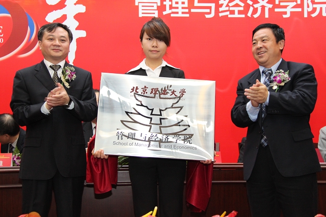 最后,杨宾副校长和魏一鸣院长共同为管理与经济学院入驻新办公楼进行揭牌,将庆典大会推向了高潮。庆典大会在热烈掌声中圆满结束。