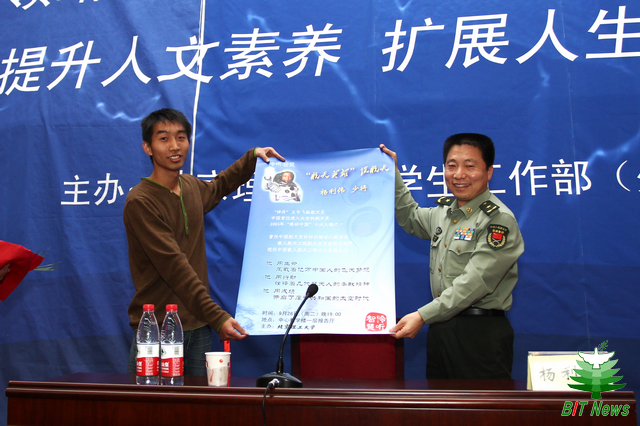 杨利伟少将通过讲述飞天历程中许多生动而感人的细节,与师生分享了他的切身体会:航天人拥有为了祖国航天事业的发展而努力、为了祖国荣誉而奋斗的精神,这种精神给了几代航天人克服困难的决心和力量;载人航天的成功是中华民族的成功,领导、战友、专家以及全面人民的关心和支持给了他莫大的鼓励,他为祖国感到骄傲;科技的力量是无穷的,正是航天技术等科学技术的不断发展使得我国载人航天工程不断突破,国家的综合国力不断提高。