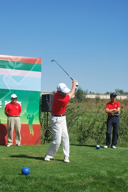 母校七十年校庆的第二天,下午一点三十分,经过简短的开球仪式,四十多位校友分十二组在银泰B场开始比赛,经过四个多小时的角逐,在大风中校友们打出了较好的成绩。
