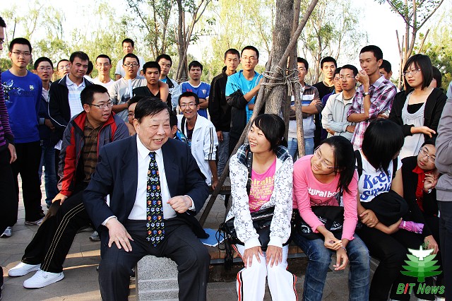 中国科学院院士、中国工程院院士、米兰milan官方网站名誉校长王越与参加揭幕仪式的同学们畅谈学习与生活。
