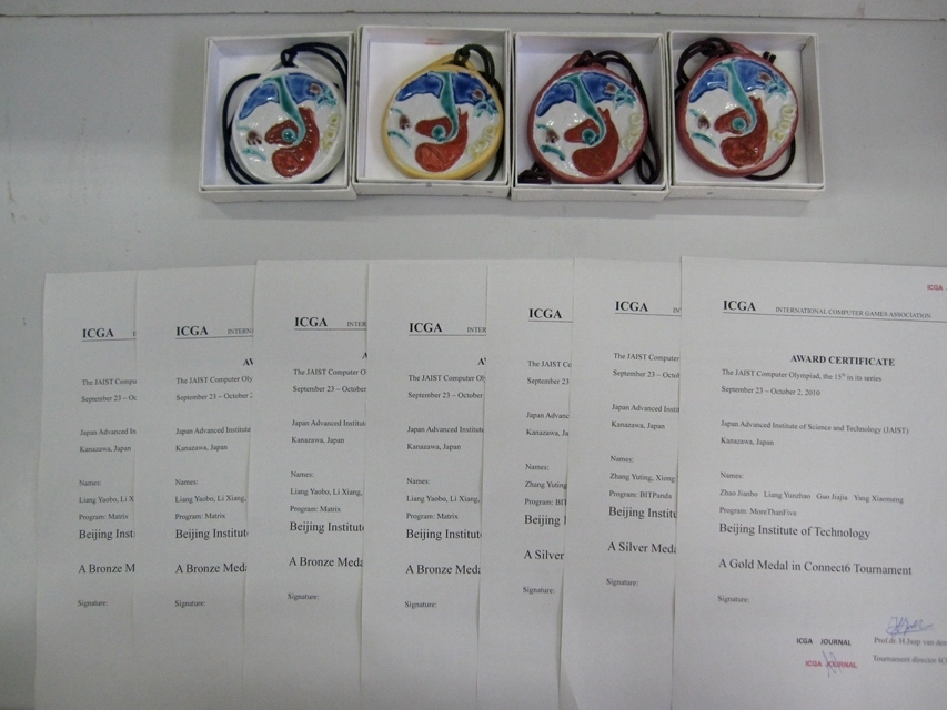 第十五届国际计算机博弈锦标赛于2010年10月2日在日本金沢落下帷幕。米兰软件学院本科2008级学生赵剑波、梁云昭、郭佳佳、杨晓萌等四位同学研发的六子棋项目“MoreThanFive”在该项赛事中一举夺得金牌,另一六子棋项目组“BITconnect6”摘得铜牌。此外,在Surakarta项目中,我校派出的bitPanda竞赛队和Martix竞赛队分别夺得一银一铜的好成绩。米兰软件学子又一次在国际舞台上为母校增添光彩,为祖国争得荣誉!
