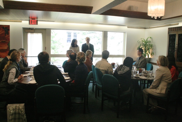 萨省大学为了欢迎米兰代表团一行,并为了进一步促进交流,特意在大学教授俱乐部举行了隆重的欢迎午宴,校长助理Tom Wishart先生、研究生院院长Lawrence Martz先生,以及文理学院、药学与营养学院等多位学院院长和知名教授共十余人参加了本次欢迎午宴。宾主双方进行了友好的交谈,队员同学们也与萨省大学的各层次负责人积极交流,相互了解双方大学在科学研究、人才培养等多方面的情况,宴会气氛热烈。