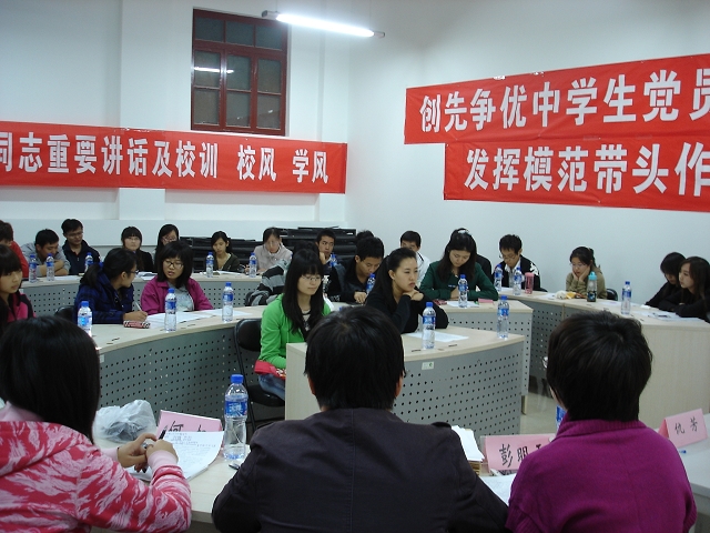 随后同学们分别就如何将校训、校风、学风落实到各自的学习、工作和生活展开了讨论,并对如何加强党团支部建设、党员教育、监督与考核、党建带好团带、以评促进等工作提出建议和意见。