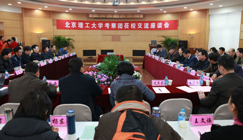 随后,双方与会人员结合工作实际,在党的建设、研究生教育、学科建设、新校区规划等方面进行了深入交流。我校研究生工作部部长郝洪涛在研究生招生、研究生专业学位管理等方面与对方进行了探讨,良乡校区管理处处长徐承俊深入了解了太原理工大学在新校区规划与建设、后勤保障方面的做法与经验,离退休工作处副处长范友联详细咨询了离退休工作管理情况,设计与艺术学院副书记、副院长丛磊在学科建设、专业设置、学生就业等方面与对方进行了交流。太原理工大学组织部部长李大公介绍了基层党组织建设、党员干部的学习制度等情况,理学院副院长兼光电工程系主任王云才介绍了理学院最新情况,并希望与我校加强人才交流与合作。