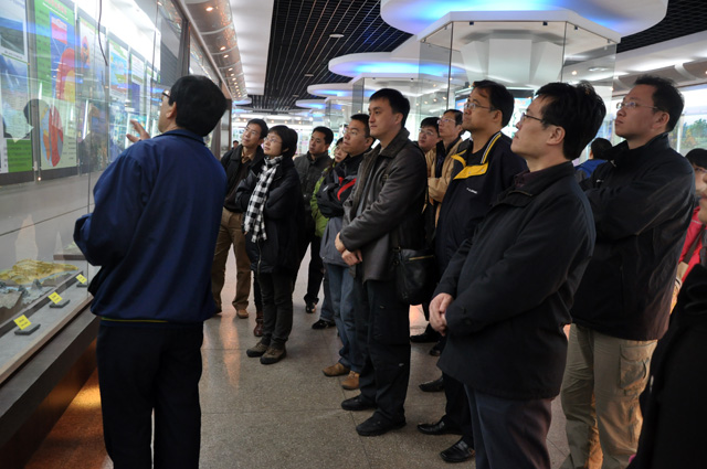 座谈会结束后,双方互赠礼品。考察团一行在太原理工大学相关领导的陪同下,前往虎峪校区,参观了地球科学馆。