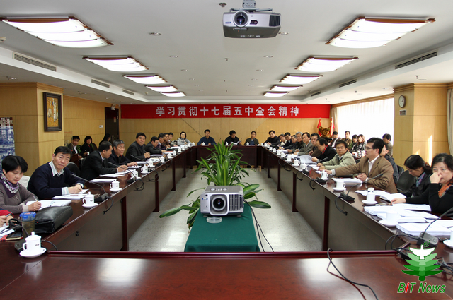 10月29日下午,校党委理论中心组开展了主题为“学习贯彻十七届五中全会精神、学习贯彻全国教育工作会议精神”的集中学习。校党委书记郭大成主持会议,校党委理论学习中心组成员,各学院书记、院长,职能部门负责人参加了会议。马宝华教授、盛新庆应邀作了作了精彩的主题发言。会议围绕《中共中央关于制定国民经济和社会发展第十二个五年规划的建议》、《国家中长期教育改革和发展规划纲要(2010-2020年)》等主题进行了深入讨论。