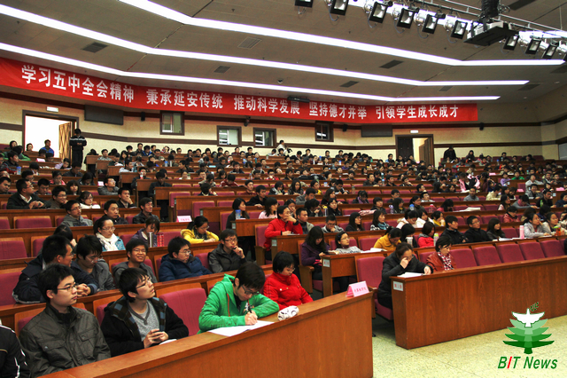 为进一步弘扬延安精神,丰富校园文化生活,关注大学生成长成才,11月3日下午,校党委组织部、学生工作部、研究生工作部邀请中国延安干部学院教授李世明,在中心教学楼一层报告厅为我校学生党员作题为“延安精神与学子成才之路”的专题报告, 报告会以“学习五中全会精神,秉承延安传统,推动科学发展,坚持得才并举,引领学生成才成长”为目标,指导学生党员理解延安精神内涵,规划自身发展之路。报告会由校党委副书记、工会主席侯光明主持,部分学院领导、相关部门教师出席,400余名学生党支部书记、学生党员代表到场聆听。