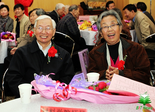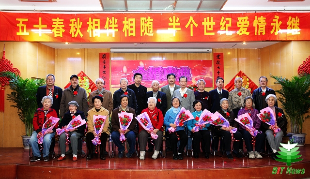 11月5日上午在理工国际教育交流中心多功能厅,我校离退休工作处、离退休教职工党委为我校2010年金婚夫妇举行金婚庆典。校党委书记郭大成,副书记侯光明,以及各对金婚夫妇原单位领导出席了金婚庆典仪式。