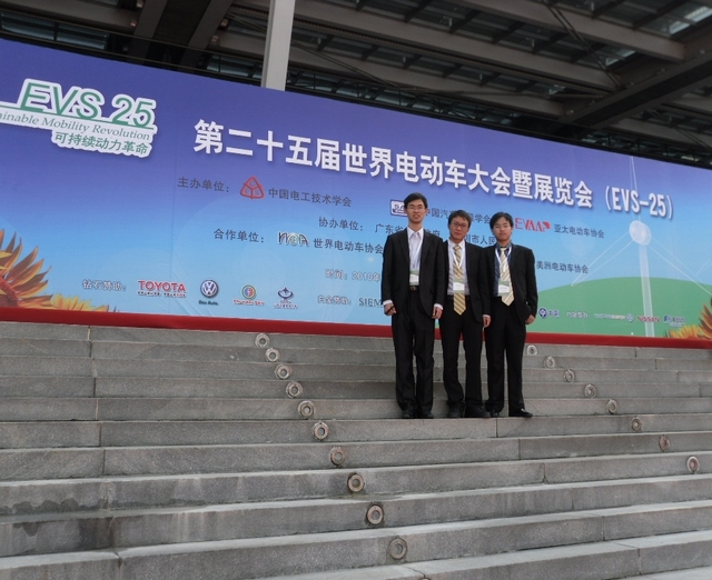 第25届世界电动车大会暨展览会(简称EVS25)于2010年11月在深圳举行,我院2007级本科生邹长福、李金灵、岳小伟应邀参加了会议。全国人大常委会委员长吴邦国发来贺信,强调中国政府将把节能与新能源汽车作为产业发展方向。科技部、工信部、财政部、广东省、中国电工技术学会、中国机械工业联合会、中国汽车工程学会、深圳市以及世界电动车协会下属三大洲协会、各大企业高层的领导和嘉宾出席了开幕式。本次大会的主题为“可持续动力革命”,探索产业高端及前沿技术的研发与创新,并为国际电动车产业经济技术合作与交流搭建平台。