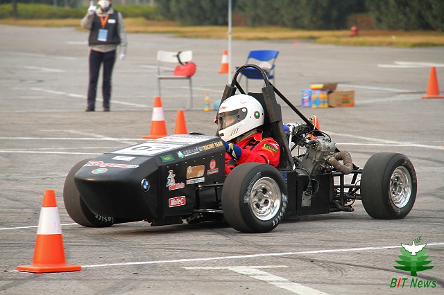 18日车队早早出发,“焕然一新”的赛车重新出现在赛场之上,经过检测合格之后,大家开始着手准备一系列动态项目的比赛(8字绕圈、75米加速、高速避障赛)。当天上午的8字绕圈成绩为6.04秒,跻身三甲;