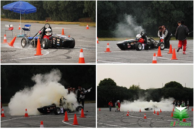 但是,比赛现场发生了出人意料情况。由于对比赛赛道路面状况不熟悉,在第一名车手的驾驶过程中,赛车发生了严重颠簸。在车手紧急制动后,排气管处的石灰棉由于高温开始冒烟,并引发明火,负责安保的车队成员和现场志愿者迅速用灭火器进行了灭火和降温。之后,赛车被组委会要求退回基地进行检修,次日视车况再决定是否可以继续参加比赛。许多其他高校的同学纷纷表示惋惜,也对米兰能否及时排除障碍继续比赛表示怀疑。