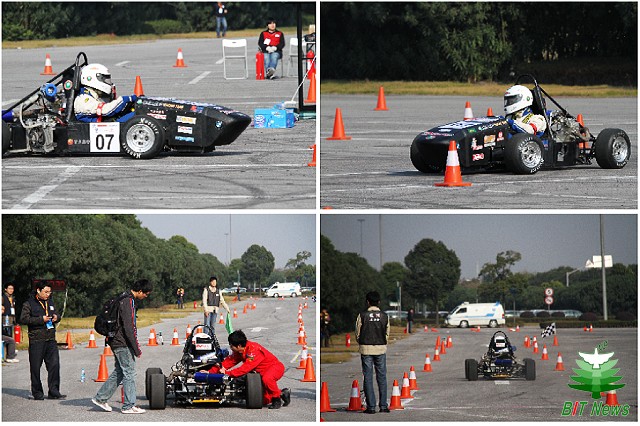 17日下午1点左右,参赛队员开始准备第一项动态项目——8字绕桩。由于在参赛前车队就本项赛事在北京进行过模拟练习,并且对当时的成绩比较满意,所以队员们的心情都比较轻松,自信满满。