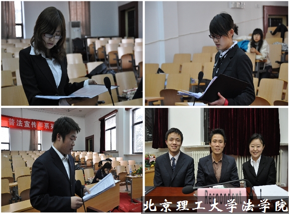 比赛共分为六场。每场比赛时间是一个小时,原被告双方用英语进行法庭陈述、法庭辩论及回答提问。我校选手们流利的英语,扎实的法律知识,严谨的逻辑,激烈的辩论,使得比赛精彩异常。