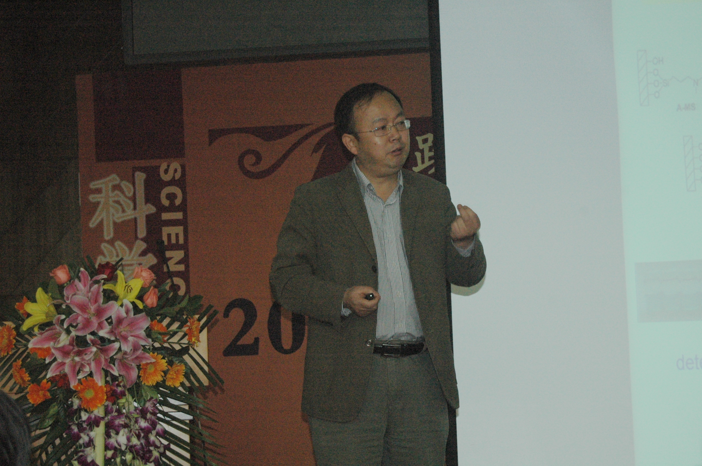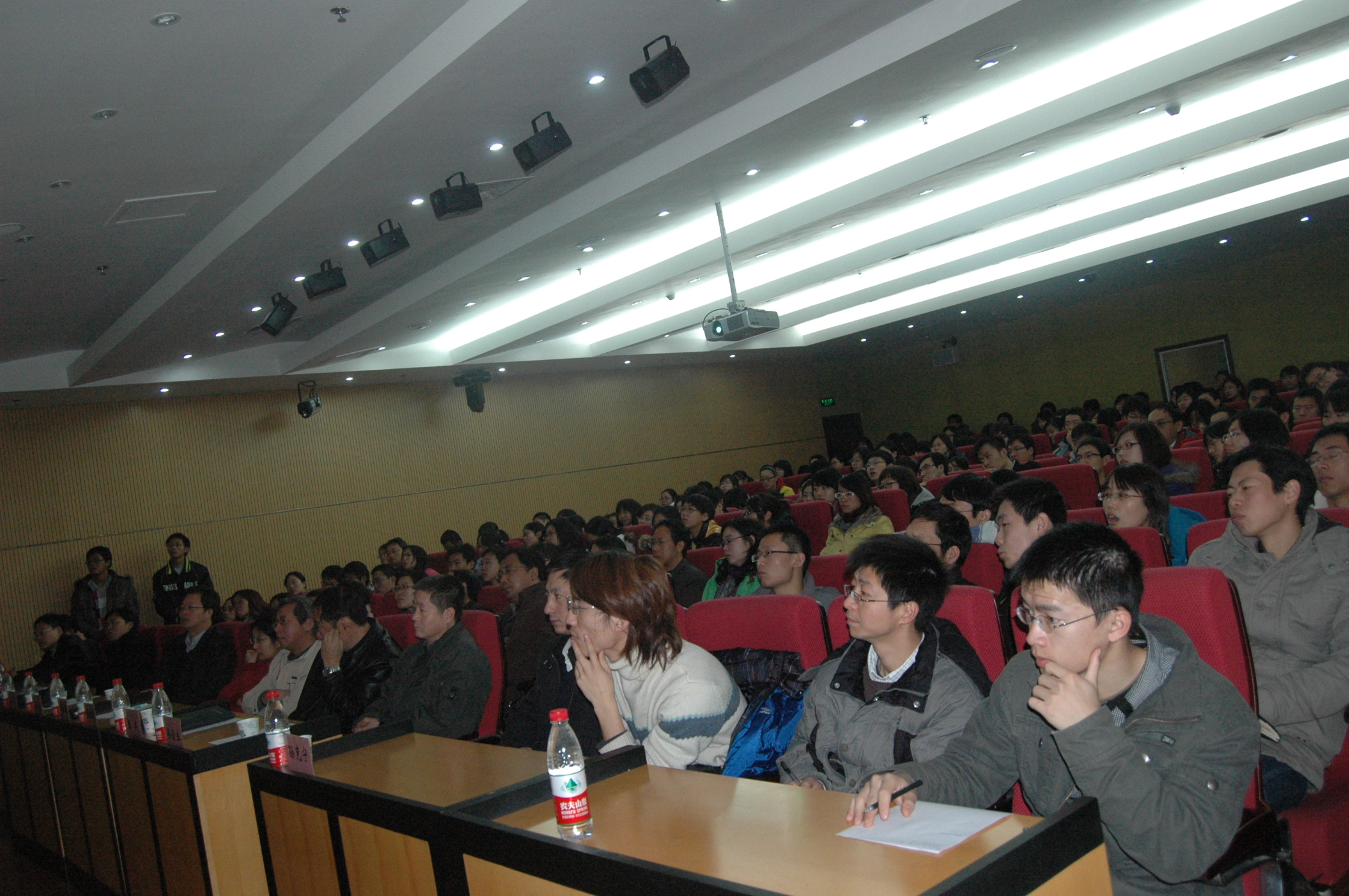 开幕式结束后,我院校友、国家杰出青年基金获得者、清华大学教授李广涛博士作了题为《基于有序孔结构的功能材料架构》的开坛报告。李教授用简明的语言,生动、启发式地讲授了他本人归国以来基于微纳和介孔基础上的导电、荧光和分子印迹等材料的自组装技术及其应用研究。李教授的报告深入浅出,富有启发性,在传授知识的同时,也给全院师生特别是广大研究生以深深的激励和鼓舞。