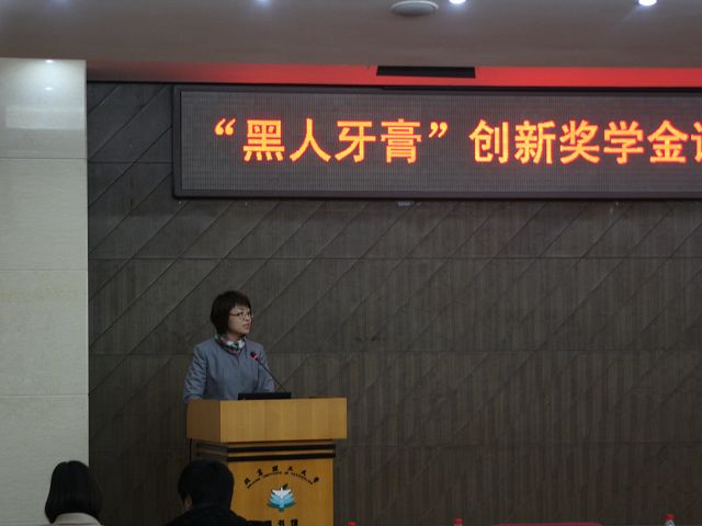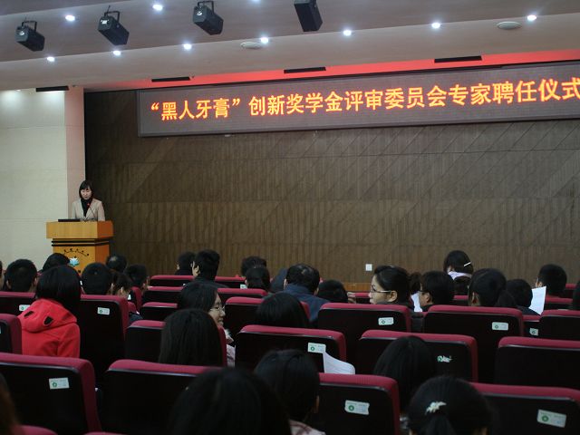 2010年12月8日,“黑人牙膏”创新奖学金评审委员会专家聘任仪式在图书馆报告厅隆重举行。好来化工(中山)有限公司研发部副总监施瑶女士、研发部项目负责人徐娟女士、米兰milan官方网站理学院院长胡长文教授、院长助理邵会波教授、化学系副主任张小玲教授、化学系曲良体教授、张韫宏教授出席聘任仪式。理学院团委书记王晶晶老师主持本次聘任仪式。