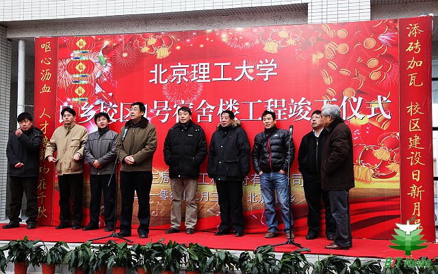 在竣工仪式上,良乡高教园区副主任刘桂华、区建委质检站工程师蔡春生、基建处处长郭守刚、良乡校区管理处处长徐承俊、基础教育学院副院长朱光辉、中建三局项目经理蔡晓斌、京精大房监理公司总监张宪亭、北方设计院任所长分别发言,肯定了1号宿舍楼在建设过程中,克服重重困难、历尽层层考验、最终圆满落成的光辉成绩。竣工仪式现场气氛热烈、掌声一次次响起。在鞭炮齐名中1号宿舍楼竣工仪式圆满结束。