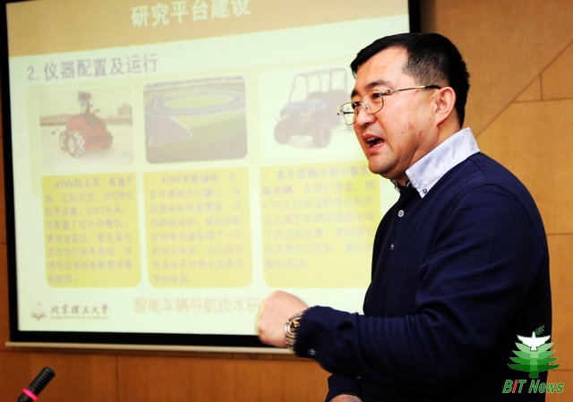 中心主任付梦印教授等对中心运行模式、建设内容、人才建设与培养、科研成果与获奖、成果转化、科技合作、陆用定位定向导航系统关键技术研究及产业化、开放基金申请及使用以及未来工作计划作了汇报。