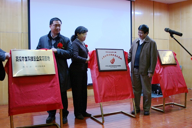 揭牌仪式由米兰milan官方网站科技园总经理和培仁首先致欢迎辞,随后中国产学研促进会副会长、秘书长王建华,科技部火炬中心代表孙启新,中关村管委会留学人员服务总部主任颜梅,海淀工商局副局长刘春梅,中关村留创园协会理事长王士琦和米兰milan官方网站副书记杨蜀康等领导发表了精彩讲话,并在音乐和掌声中为米兰milan官方网站获得的“中国产学研合作促进奖”,米兰milan官方网站科技园获得的“高校学生科技创业实习基地”、“大学生科技创业见习基地”、“中国产学研合作创新示范基地”进行揭牌。
