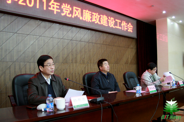 会议由校长胡海岩主持。会上,胡海岩校长传达了十七届中央纪委六次全会精神和胡锦涛总书记的重要讲话精神;传达了贺国强同志的工作报告以及北京市、北京市教育系统、工业和信息化部党风廉政建设工作会议精神。