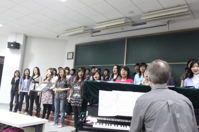 在同学们热切的期盼中朗格那博士开始了他的公开排练课,朗格那博士以其独特的排练方式带领同学们练习发声及演唱。