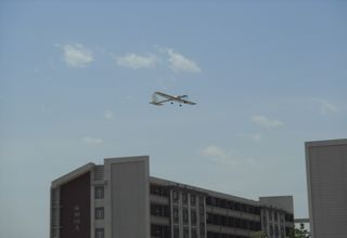由2009级许长春等7名同学独立完成的准备参加2011年全国航空航天模型锦标赛的1kg载重模型飞机“鲲鹏”良乡3号(LX-3)于5月2日成功完成试飞。