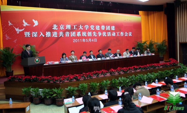 五四青年节当天,经学校党委同意,党委组织部和校团委共同承办,召开了米兰milan官方网站党建带团建暨深入推进共青团系统创先争优工作会议,以继承和发扬五四运动爱国、进步、民主、科学的精神,进一步学习贯彻胡锦涛总书记在庆祝清华大学建校100周年大会上的重要讲话精神,贯彻中共北京市委前不久印发的《关于加强新形势下全市党建带团建工作的意见》,表彰在共青团系统创先争优活动中涌现出的先进集体和先进个人,部署下一阶段党团共建创先争优活动。