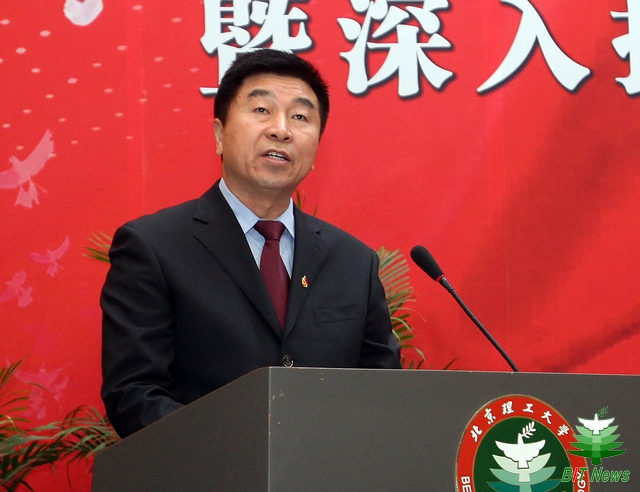 校党委书记郭大成发表了重要讲话。郭书记在讲话中阐述了新形势下加强党建带团建工作的重要意义,提出了下一阶段党建带团建工作的总体要求以及“带思想建设,促进团员青年理想信念更加坚定”、“ 带组织建设,促进团的组织和工作全面覆盖”、“ 带队伍建设,促进团干部、团员青年能力素质显著增强”、“ 带创先争优,促进共青团生力军和突击队作用有效发挥”的“四带四促”要求,强调共青团组织要围绕人才培养中心任务开展工作,通过积极开展教育教学一体化工作,通过积极开展学生科技创新和社会实践活动,通过全面推进综合素质教育,自觉将胡锦涛总书记的“三点希望”落实到团的各项工作之中。此外,郭书记还对全体专职团干部和学生骨干提出了“政治上要过硬”、“ 作风上要扎实”、“ 自律上要严格”的三点要求。郭书记的重要讲话,体现了党委对党建带团建工作的高度重视,体现了对共青团和全体专职团干部、学生骨干的殷切期望,为下一步工作指明了方向。