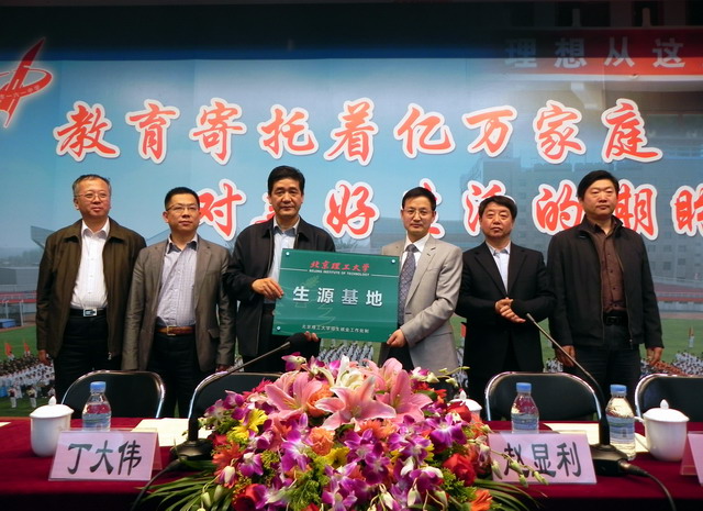 5月6日,“米兰milan官方网站优质生源基地” 授牌仪式在北京一六一中学举行。我校副校长赵显利、学校办公室主任、招生就业工作处处长郝志强、副处长郭宏、图书馆馆长张永发等一行六人参加了授牌仪式。