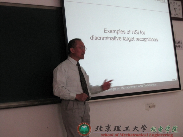 5月9日,机电学院机电系统工程系邀请英国cranfield大学国防学院 Peter Yuen教授在研究生教学楼为我校师生作了题为“高光谱技术及其应用”的学术报告。报告会由机电系统工程系副主任王正杰老师主持,来自我校机电学院、光电学院、生命学院的师生以及北京科技大学教师参加了报告会。