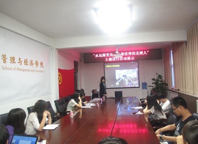 5月9日晚,我院举行了此次“永远跟党走,争做优秀的北理人”主题系列团日活动展示会。学院优秀团日活动所在班级的团支书进行了成果的展示,学院分团委书记彭明雪老师,分团委副书记何旭、孙秋红老师以及各支部支书出席了此次会议。活动中,07、 08级以及体优班团支书依次进行班级团日活动展示汇报,将各班的团日活动形式、内容、主题意义进行了展示、解说。