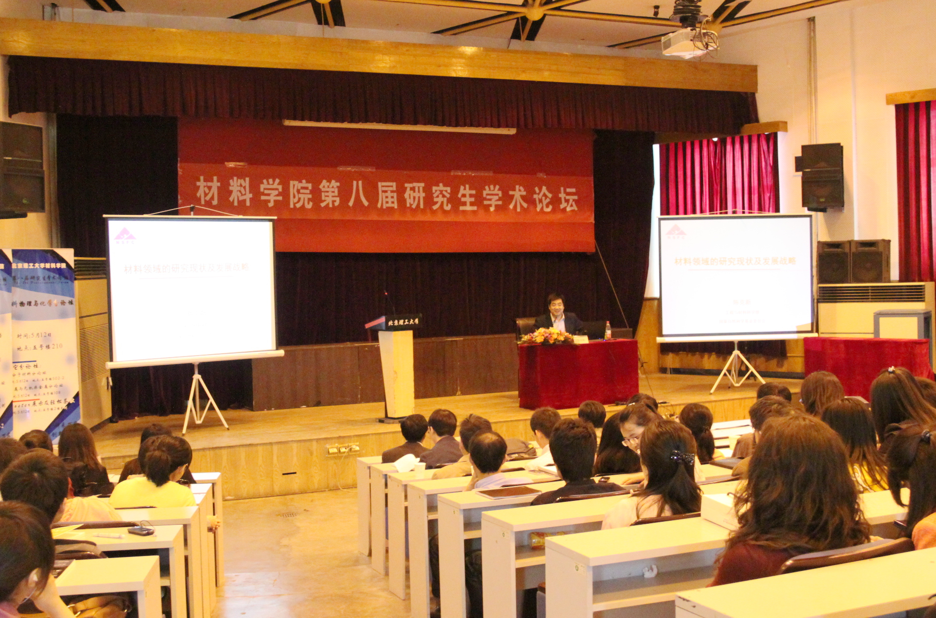 陈克新教授分别对结构、功能、能源、信息、生物材料进行宏观评价,指出其发展趋势、国内外研究热点,并就研究生如何选取课题作出指导。他以卢柯院士、侯建国教授、魏炳波教授的研究为例,图文并茂,用幽默诙谐的语言介绍如何取得具有创新性的科研成果。同学们听得兴致勃勃,学术报告结束后,与陈教授交流得热火朝天。