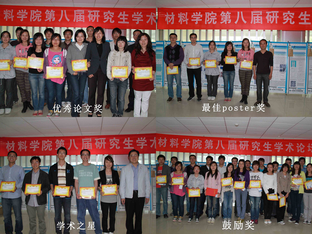 颁奖仪式在五号楼二层大厅举行,校团委书记蔺伟为获得“学术之星”的同学颁发了荣誉证书。魏赛、王晓、隋竹银、豆艳坤、李明扬5名同学荣获材料学院“学术之星”,纪仁龙、孙川等15名同学荣获“优秀论文奖”,周静怡、霍咚梅等5名同学获“最佳墙报奖”,丁晴雯、孟范昌等30余名同学获得“鼓励奖”。