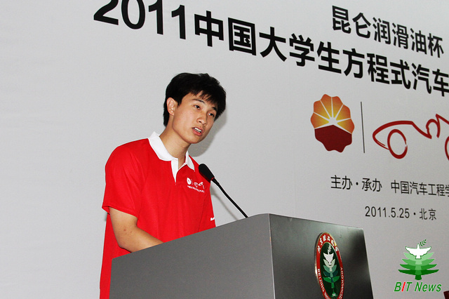 去年的全国冠军车队——米兰milan官方网站学生方程式车队队长董路宁代表各参赛学生发言。结合米兰milan官方网站开展此项目的过程,董路宁认为这对培养学生的综合能力起到了很好的载体作用,热情、激情、友情构筑了成就梦想的舞台。