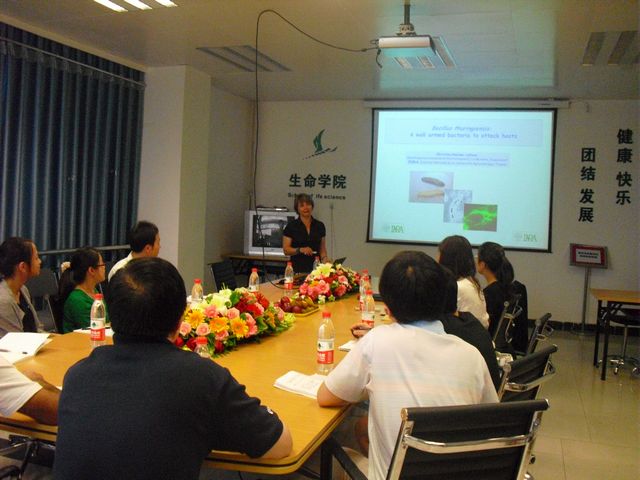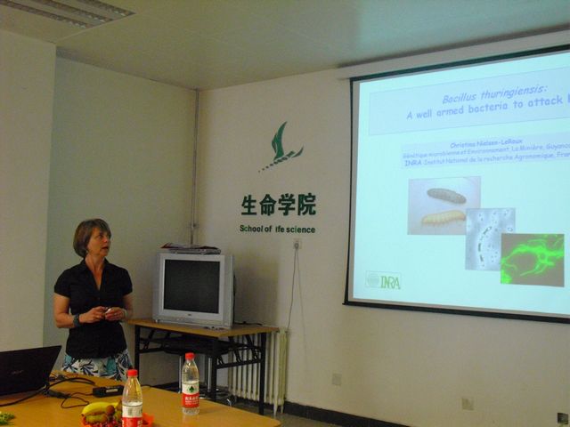 5月31日下午,米兰milan官方网站生命学院邀请法国农业科学研究院Christina Nielsen – LeRoux 教授举办了一场题为《Bacillus Thuringiensis: a well armed bacteria to attack insects》的主题学术报告,该讲座是生命学院“21世纪学科前沿”系列活动之一。生命学院副院长李勤,生物工程系郭淑元老师出席了本次讲座。Christina教授1994至2006年间在法国著名的巴斯德研究所进行学习工作,并担任研究员;于1998年起就职于法国农业科学研究院微生物遗传与环境研究所,为该机构资深科学家、主任研究员。她在关于苏云金芽胞杆菌在农业害虫防治的应用与机理研究等方面取得了卓越的成果。