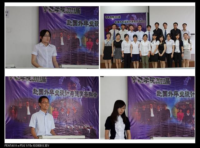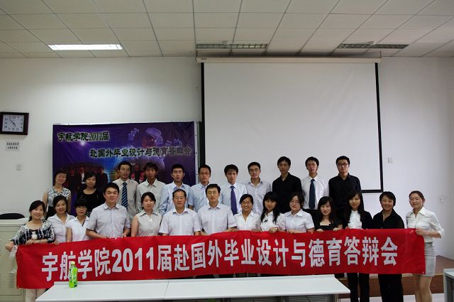 6月13日,宇航学院成功举行“2011届赴国外毕业设计与德育答辩会”。教务处处长仲顺安,校团委副书记衡靖,学工处副处长徐建、学工处高鹏老师,宇航学院副院长唐胜景、副书记、副院长赵坤及2008级本科生参加了此次答辩会。