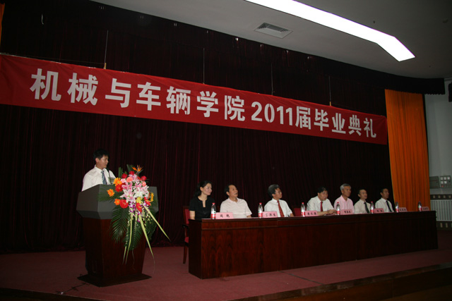 6月17日上午,机械与车辆学院2011届毕业典礼在庄严的国歌声中拉开帷幕。学院全体在校院领导、部分教职员工、部分学生家长和全体毕业生出席典礼。