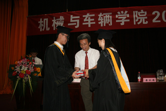 毕业典礼后的学位授予仪式上,院长项昌乐、副院长左正兴为每一位毕业研究生授予了学位,院长项昌乐、常务副院长唐水源为每一名本科毕业生授予了学位。