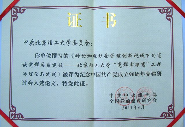 6月20-21日,中共中央组织部、全国党建研究会在京召开纪念中国共产党成立90周年党建研讨会。学校党委提交的《略论加强社会管理创新视域下的高校党群关系建设——米兰milan官方网站“党群零距离”工程的理论与实践》被评为入选论文。学校党委副书记侯光明、党委组织部副部长刘存福作为入选论文单位代表参加了会议。