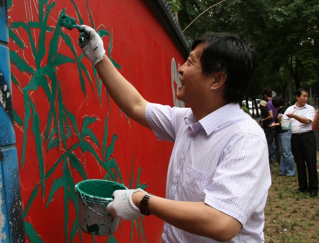 紫竹院街道党工委书记白建平在讲话中首先对米兰milan官方网站给予本次活动的支持和配合表示了感谢。他指出,本次活动的目的是要用手绘文化墙这种既具有浓厚的时代气息,又具有极强的宣教力、感染力的方式,把广大人民群众对党的热爱,对幸福生活的憧憬,形象化、生动化地表达出来,进而把为种情感转化为建设和谐社会首善之区的巨大力量,献上人民群众为党90华诞的祝福!