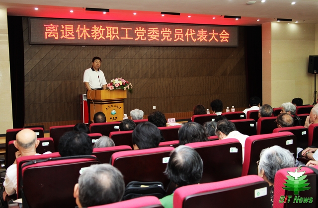 6月28日,在图书馆报告厅举行了离退休教职工党委党员代表大会。我校党委书记郭大成、党委副书记工会主席侯光明参加了大会。学校离退休工作领导小组成员单位负责人、各分党委(党总支)直属党支部负责人出席了大会。大会由离退休教职工党委常务副书记郑焱同志主持。