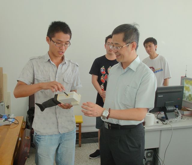 会谈结束后,姚立德校长一行在港澳台办公室王庆林主任、教务处副处长徐瑾和自动化学院副院长张百海的陪同下,参观了自动化学院实验室,与暑期正在实验室进行科学研究的教师和学生认真交谈。