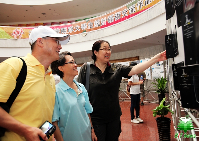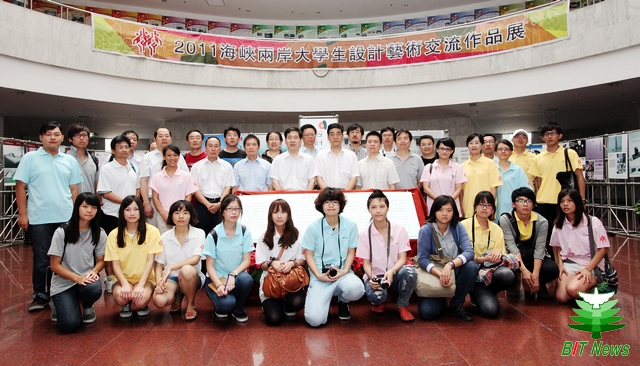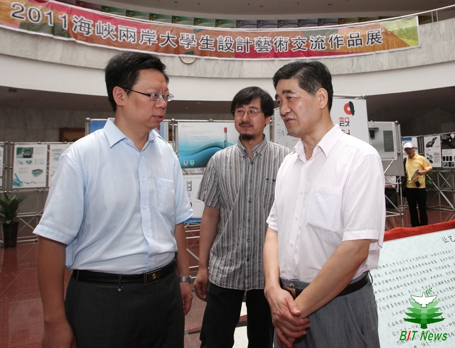 日前,"2011海峡两岸大学生设计艺术交流作品展"揭幕仪式在我校中心教学楼大厅举办。工业和信息化部港澳台办公室赵文智副司长,国务院台湾事务办公室交流局马振杰副处长,教育部港澳台事务办公室刘建丰副主任,北京市教委港澳台办公室邱晓平主任等上级部委领导,我校赵显利副校长、港澳台办公室王庆林主任、设计与艺术学院院长杨建明、党委书记杨海滨以及参加“2011海峡两岸设计艺术夏令营”的近50名两岸师生共同参加了揭幕仪式。