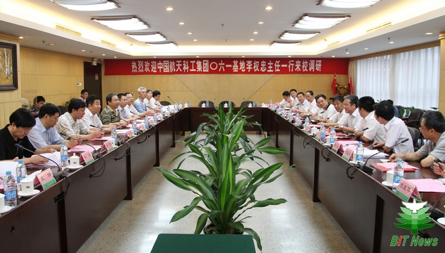 7月29日,中国航天科工集团〇六一基地主任李权忠一行来我校调研,进一步推进与我校的各项合作。李权忠主任一行抵达我校后,首先参观了我校的国防科技成果展,校长助理、科学技术研究院常务副院长陈杰向李主任一行全面介绍了学校科研工作情况。随后,李权忠主任一行与我校党委书记郭大成、副校长杨树兴,有关学院、部门的负责同志举行了座谈会,会议由杨树兴主持。