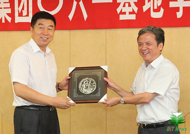 郭大成在讲话中表示学校要积极加强与〇六一基地的合作,各专业学院要与基地的相关单位进行深入交流,在机制体制上探索建立长期合作机制,推动两家单位下一步的交流合作。