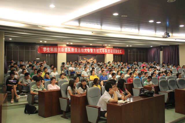 在会上节能车俱乐部、智能车俱乐部和方程式赛车工作室分别针对本团队的主要情况、人员组成以及在开展科技创新活动中理论与实践相结合给学生带来的收获做了详细深入的介绍,并对今后团队的发展做出了积极展望。他们在分享自己加入相应团队以来的收获和感受中提到,团结协作的组织形式、吃苦耐劳的攻关精神、注重细节的严谨态度、传承创新的工程经验都是学生科技创新活动取得成功的重要因素。三个团队的精彩发言激起了在场的同学对学生科技创新活动的浓厚兴趣。