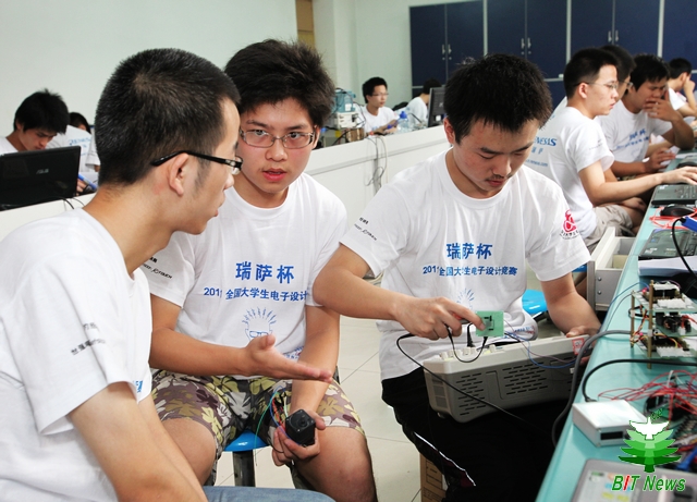 我校自4月份启动竞赛报名工作以来,教务处通过召开赛前动员会、网上宣传等多种方式积极组织学生报名参赛,并依托信息学院、自动化学院、光电学院、宇航学院与机电学院的创新基地开展赛前辅导与培训。经过4个多月的紧张培训和严格选拔,最终有41支队伍、123名学生正式参加竞赛角逐,其中信息学院18队,自动化学院11队,光电学院6队,宇航学院3队,机电学院3队。