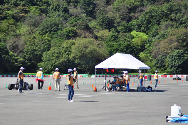 7日上午,车手经过几次简单的练习之后,队伍即赶赴直线加速比赛现场参加第一项动态比赛,以轻量化、强劲动力为特点的我校参赛赛车在75米直线加速中取得了4.129秒的好成绩,比去年参加中国赛的4.92秒有了显著提升,同时刷新了日本赛此项目9年来的纪录。我校参赛队也成为历史上第一支获得国际大赛单项冠军的中国车队,而且由于我校的优异成绩,使得共计30余支参赛队此项得分只能在基础分3.5分以下。这让第一次参加日本赛的米兰方程式长安车队一时成为了众人关注的焦点。