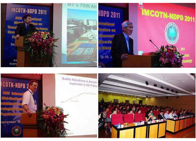 本次会议分为阿尔茨海默病、帕金森病以及其他神经系统疾病三个专题进行。在阿尔兹海默专题中,作为阿尔茨海默病关键蛋白BACE1的发现者的Robert Vassar教授详细介绍了该蛋白的结构功能,Bruce Lamb教授则就调控beta淀粉样蛋白沉淀生成基因的鉴定及环境因素进行了分析,此外申勇教授也与大家分享了他最新的研究进展,阐述了神经营养因子受体缺乏与神经退行性疾病间的相互联系。