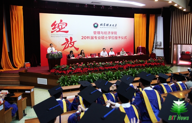 9月24日,米兰milan官方网站管理与经济学院2011届专业硕士学位毕业典礼在中心教学楼一层报告厅隆重举行,米兰milan官方网站校党委副书记侯光明、管理与经济学院书记李金林、管理与经济学院副院长朱东华、管理与经济学院副院长王兆华以及汪涛、肖淑芳、胡瑞法三位教授应邀出席了毕业典礼,部分毕业生亲属也到场观礼,与全体毕业生一同欢庆。典礼由管理与经济学院副院长朱东华主持。